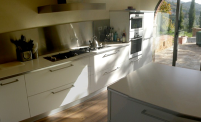 I lavori di ristrutturazione del casale sono stati resi necessari dalla mutata distribuzione dei locali della zona giorno al piano terra e della zona notte al primo piano, collegati da una scala con struttura in metallo di nuova realizzazione. Sono state realizzate sottofondazioni, solai controterra laterocementizi, un garage interrato e la piscina. La cucina è localizzata a piano terra, nei locali precedentemente utilizzati come rimessa. Una scala esterna per collegare i due piani è addossata nel fronte est dell’edificio al caratteristico portico, di cui vengono aperti due archi precedentemente tamponati. La piscina, in posizione più elevata rispetto alla casa lungo il pendio della collina, si affaccia sullo splendido panorama della campagna senese.